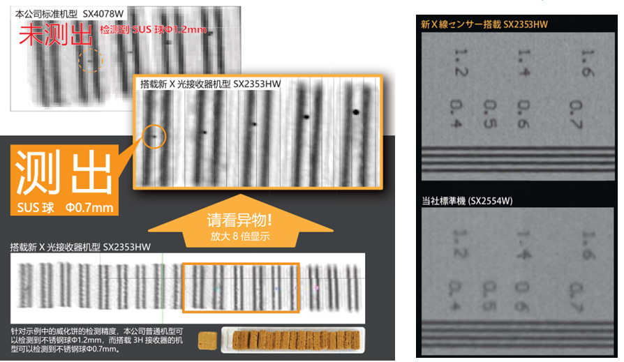 異物檢測 夾(jiá)包檢測 相對重(zhòng)量、面積 個數、形(xing)狀
